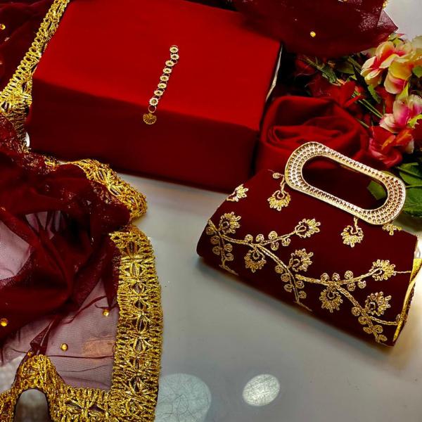 Discover our 3 Pcs Embroidered Set in Silk & Banarsi Fabric. Perfect for any occasion, this Elegant Women's Stitched Gown Suit is a must-have for your wardrobe.